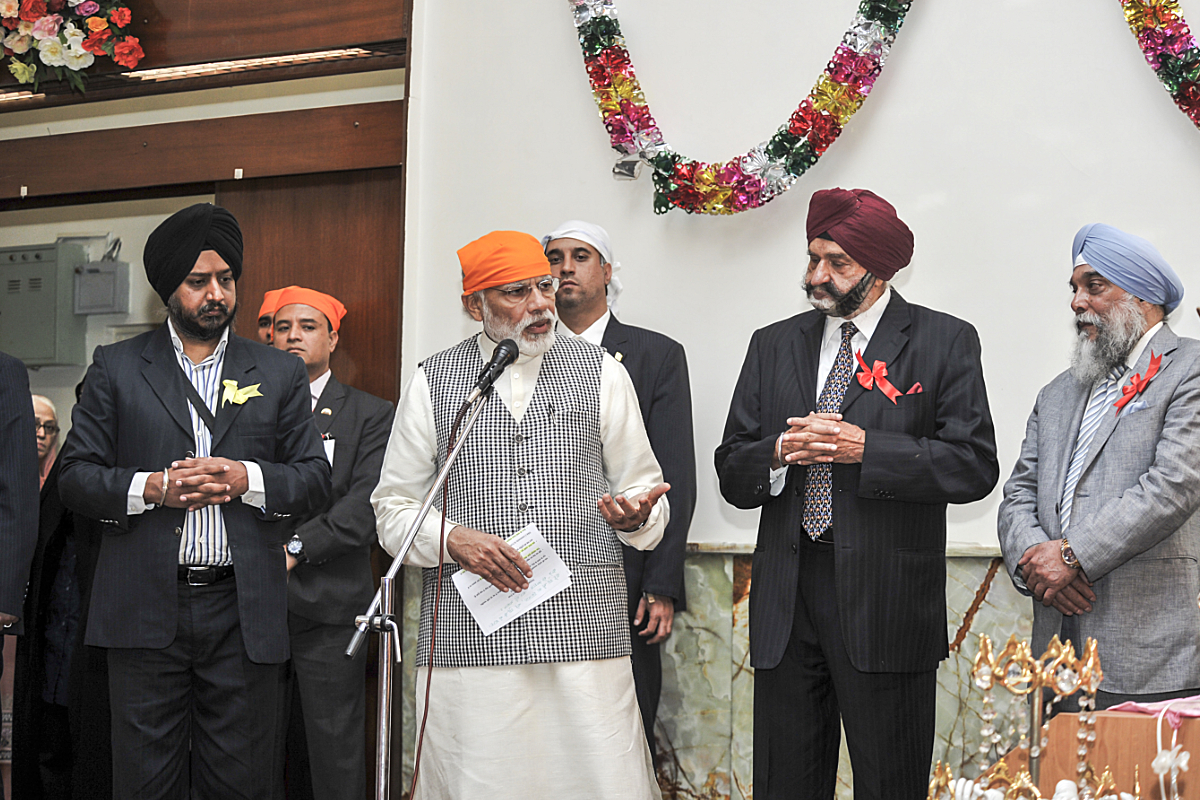 Prime Minister Modi, paid respects to the Guru Granth Sahib at the Bhai Ganga Singh Sabha Gurudwara, shortly after arriving in Tehran. He was presented with a Saropa and a Talwar.